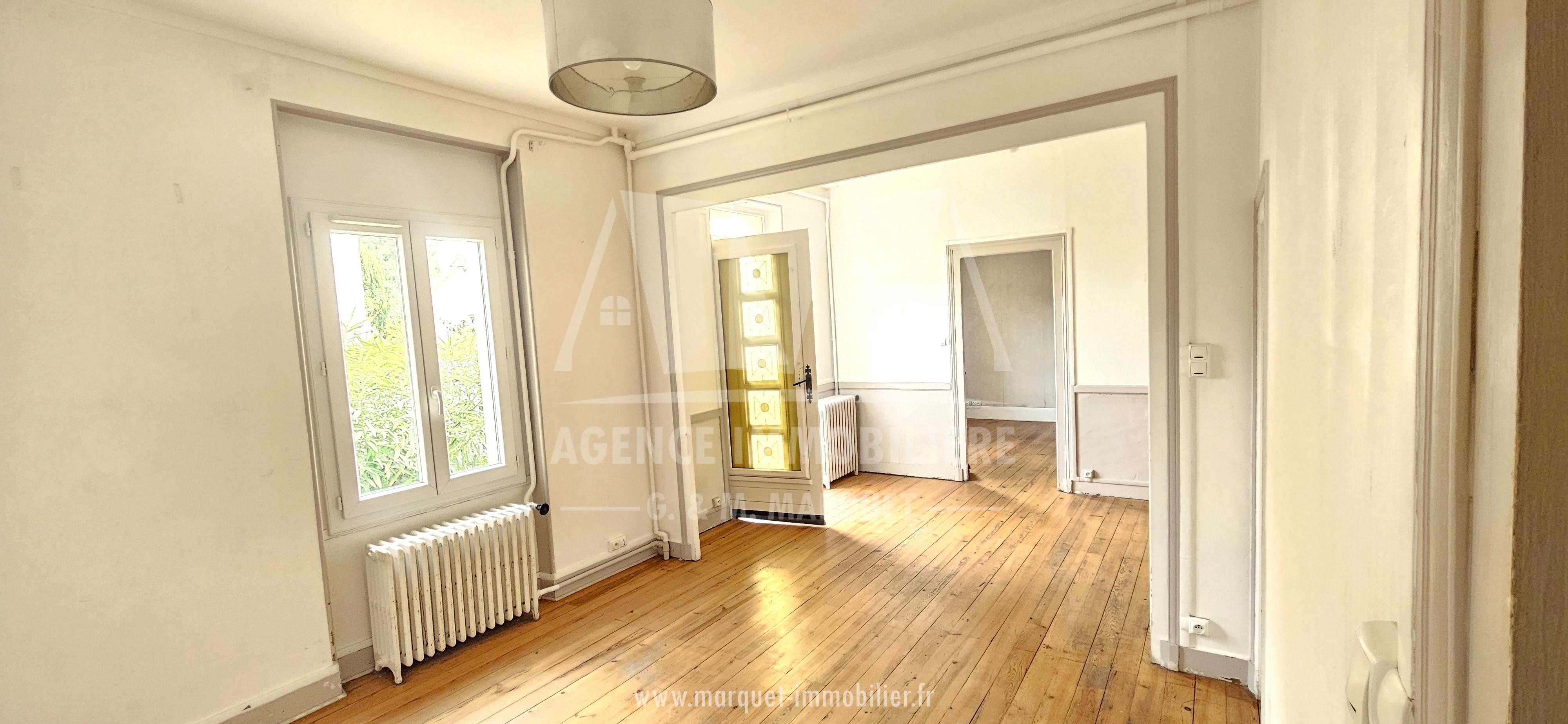 • En RDC : Une entrée/salon lumineux (19,30), un séjour ou possibilité de faire un bureau (13,50), un dégagement (3,75) avec rangements, une cuisine (11), un second dégagement (2,20), 2 pièces pouvant être des chambres (12,20 et 12) et un WC (0.80)