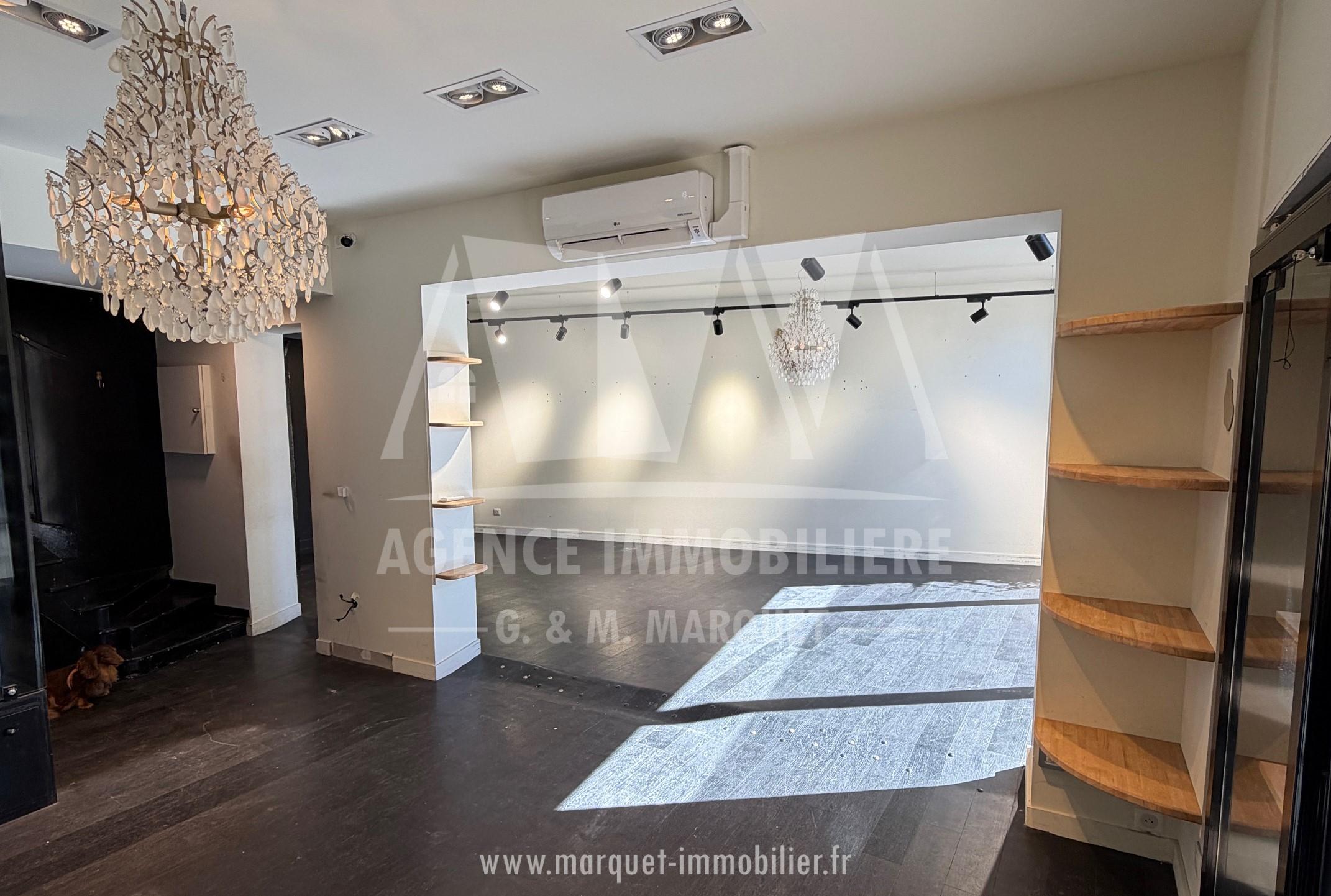 • RDC : Un local commercial d’une surface de 70,33 m² composé de 2 pièces, cabines sur l’arrière et 2 accès aux étages par 2 escaliers, partie vitrine donnant sur la rue