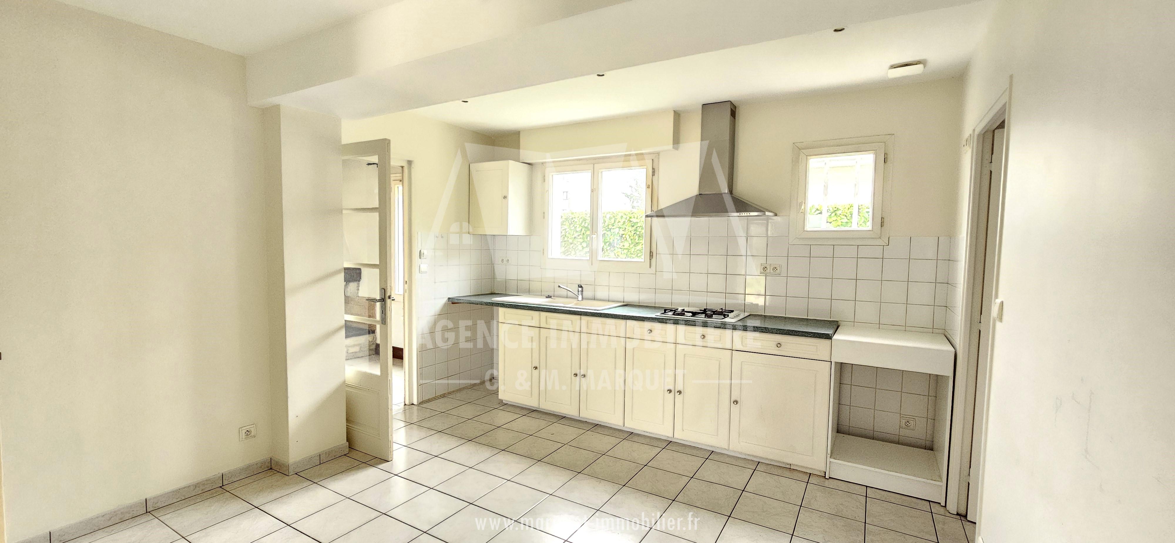 D'une entrée avec placards (11), d'un Séjour de 26 m² très lumineux donnant sur une terrasse, d'une Cuisine équipée de 16 m², d'un cellier, de 4 chambres de 13, 12, 11 et 10,50 m², d'une salle de bains/WC (6,20) et d'un WC séparé.