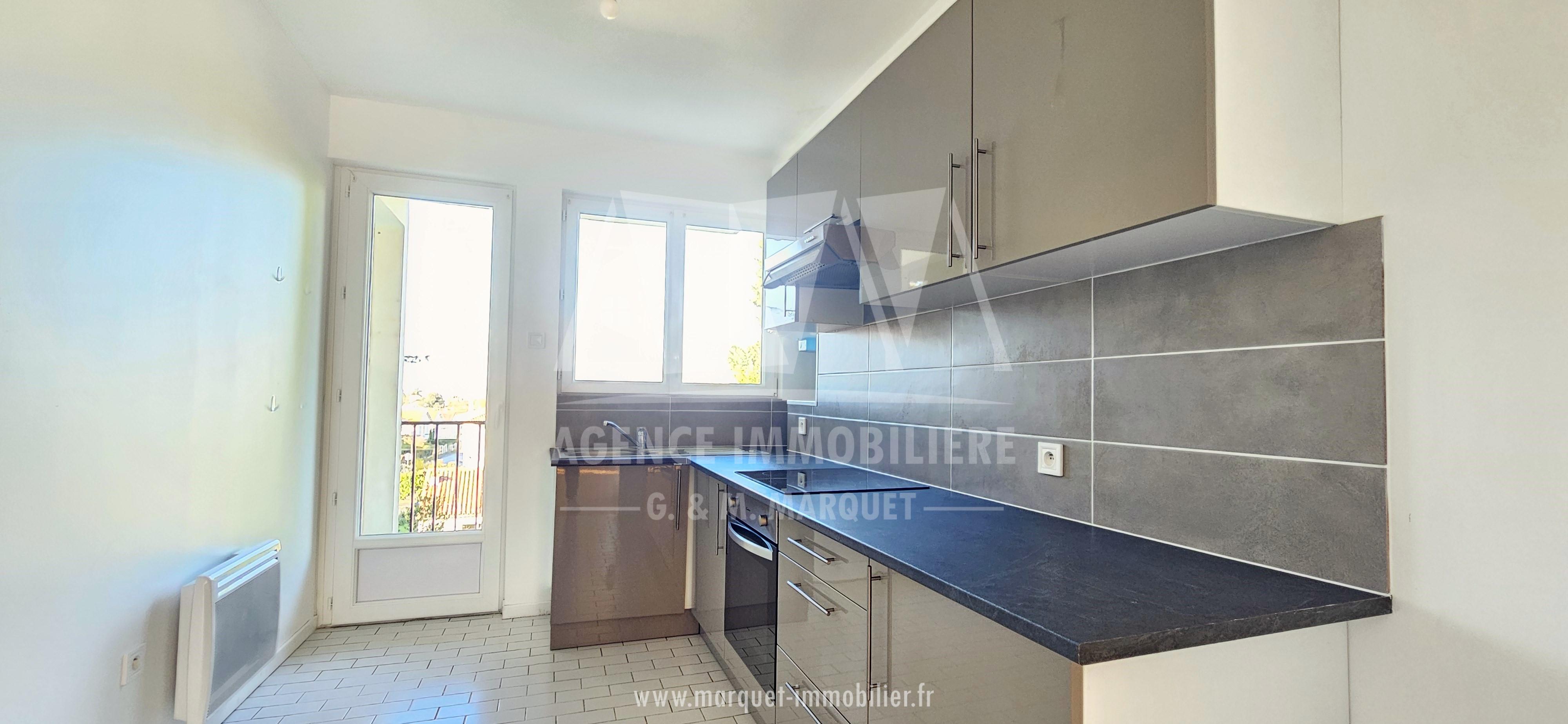 Il est composé : d'une entrée avec placards, de la pièce de vie très lumineuse donnant sur un premier balcon, d'une cuisine équipée donnant sur un second balcon, d'un dégagement avec penderie desservant 2 chambres, une salle d'eau et un WC séparé.