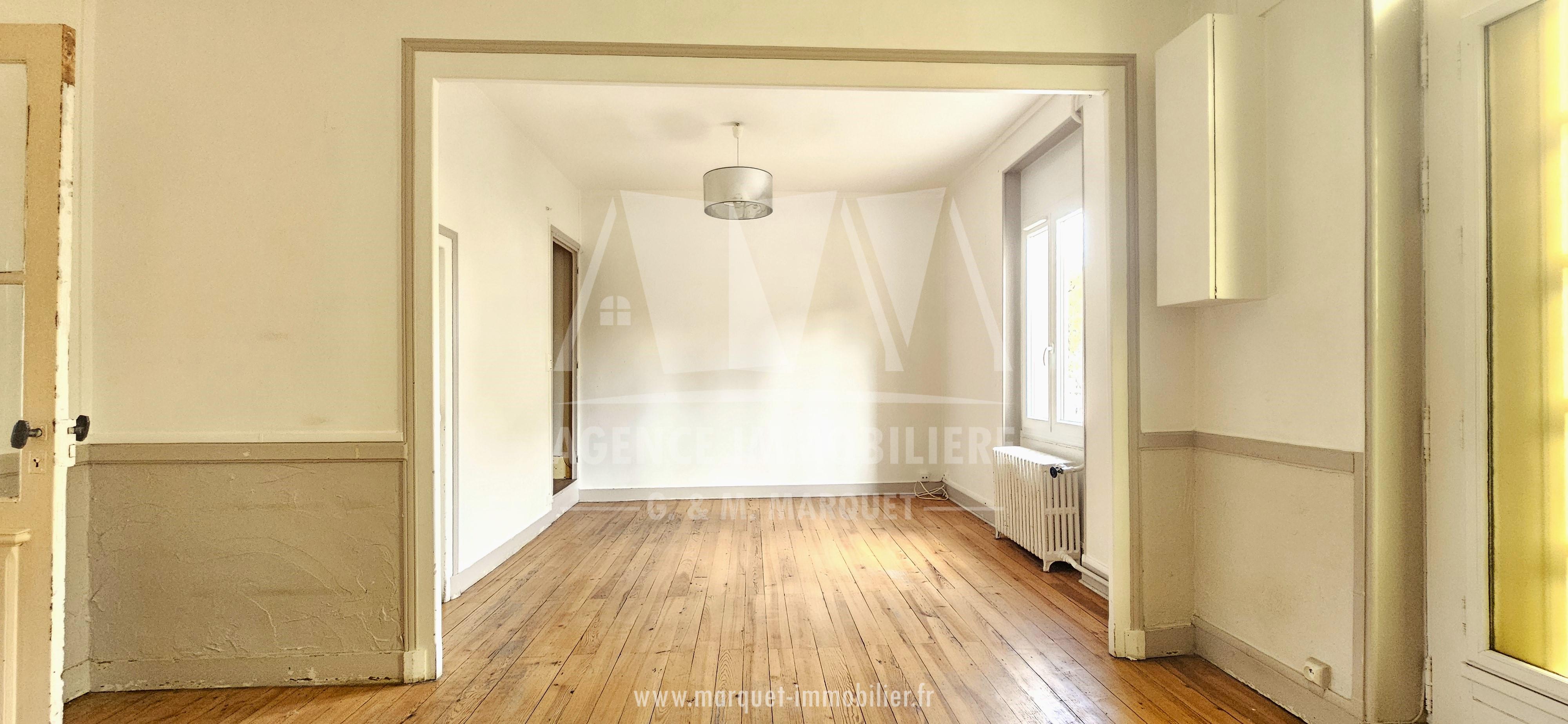 • En RDC : Une entrée/salon lumineux (19,30), un séjour ou possibilité de faire un bureau (13,50), un dégagement (3,75) avec rangements, une cuisine (11), un second dégagement (2,20), 2 pièces pouvant être des chambres (12,20 et 12) et un WC (0.80)
