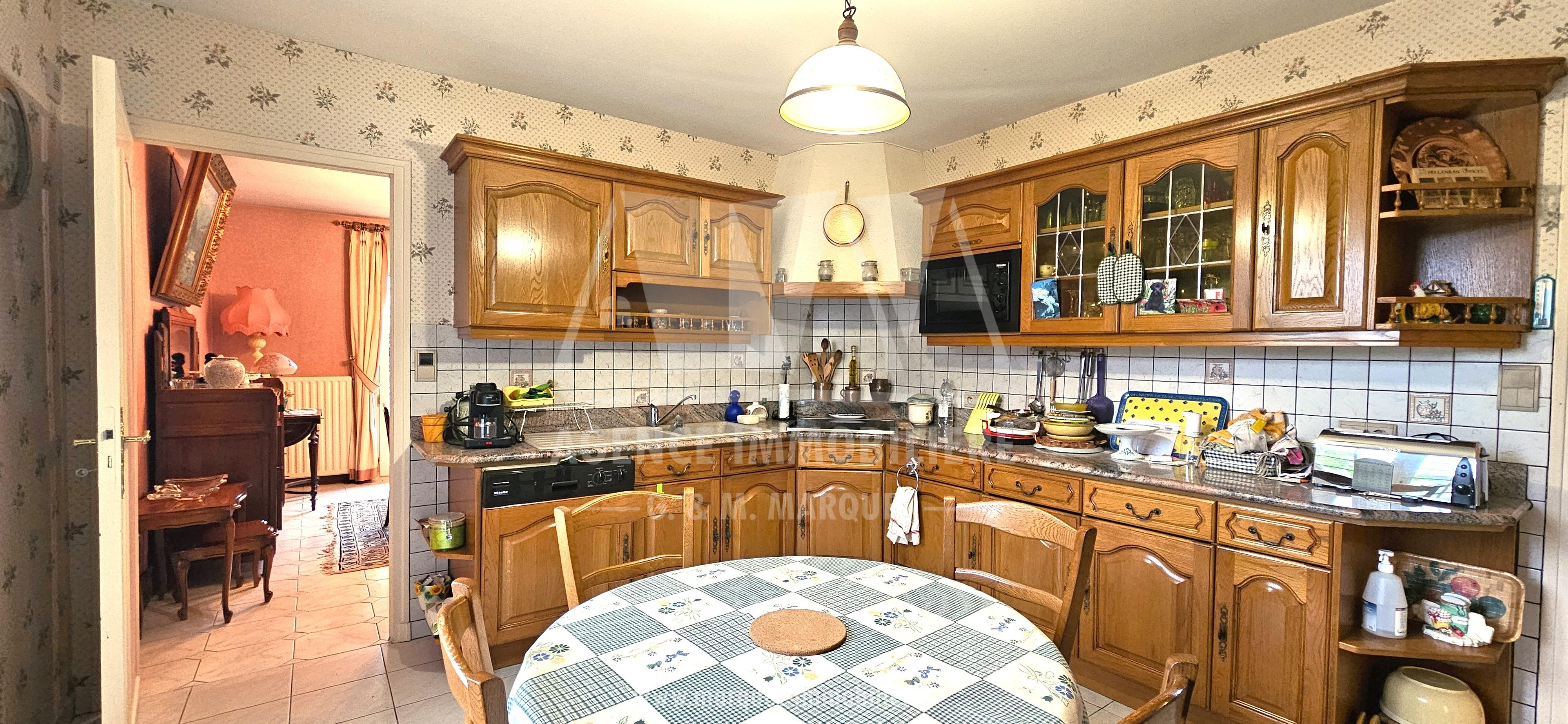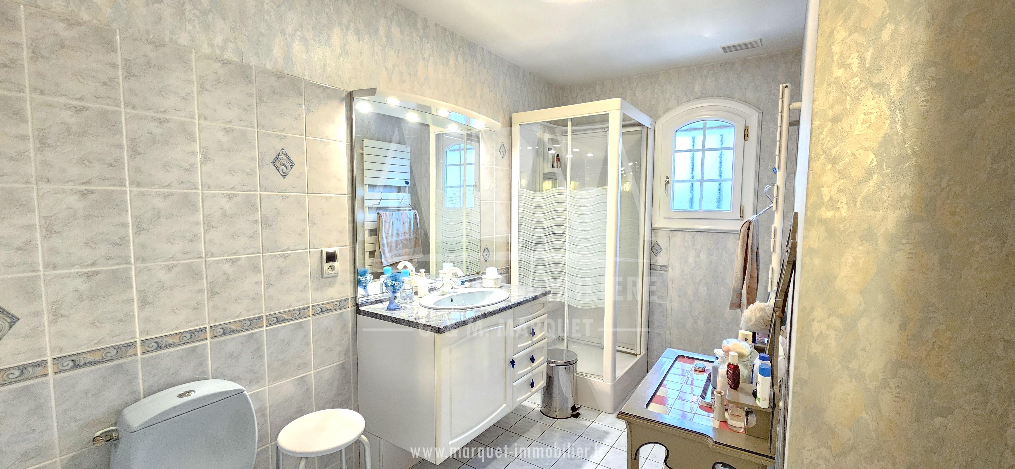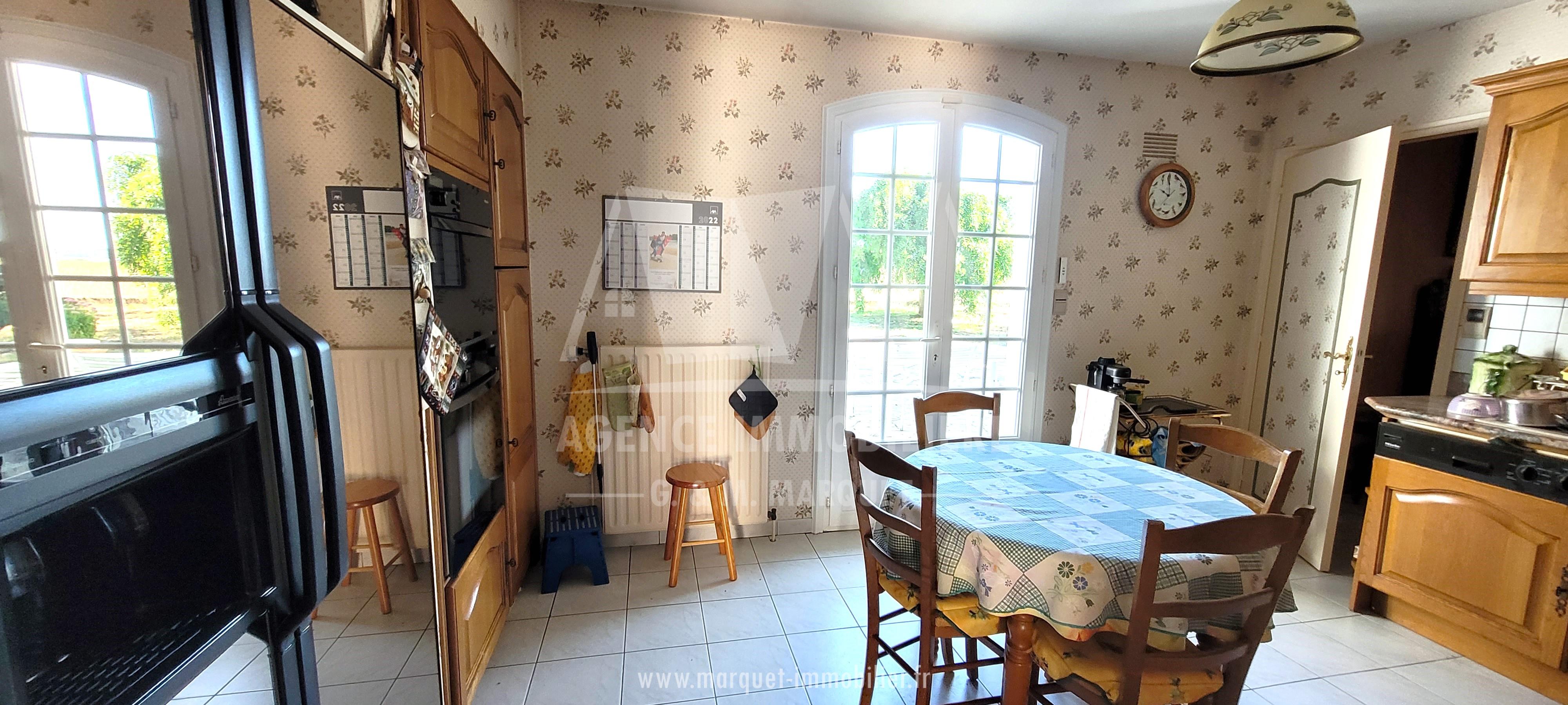 D'une entrée, à la suite du salon très lumineux de 28,10 m² avec cheminée ouvert sur la terrasse côté SUD, d'une partie séjour de 14,28 m² donnant accès sur la cuisine entièrement équipée de 14,28 m² avec éléments encastrés, d'une arrière cuisine de 19,14 m², d'un premier dégagement avec placards et un WC, un bureau pouvant se transformer en chambre de 12 m², d'un second dégagement desservant 3 chambres de 17,85, 14,14 et 12 m², d'une salle d’eau/WC (6,17)et d'une salle de bains/WC (6,86)